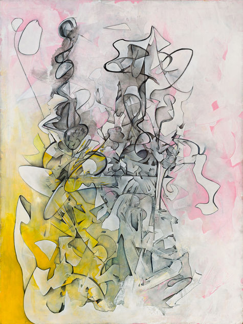 Acrylic, Oil, Charcoal, Ink, Graphite, and Pastel on Canvas